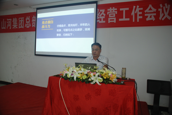 七月的大崎山之巅松涛阵阵,清风拂面。山河集团总部2013年上半年经营工作会议于7月27日在这里隆重召开,这是集团公司自湖北区域公司从总部分离之后召开的第一次半年经营工作会议,参会人员共计五十余人,会议分上午场和下午场,由集团公司总经理龚卫国同志主持。