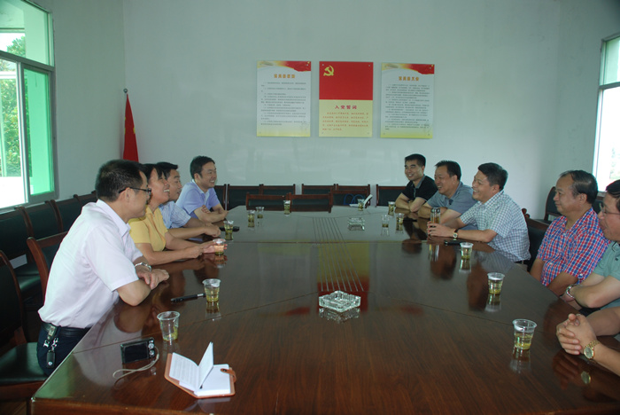 图为山河集团董事长一行人员与英山县温泉镇领导及百丈河村领导进行调研会谈
