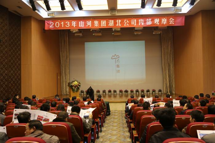 1211日,山河集团湖北公司在蔡甸中国健康谷养生社区项目召开了工程质量、安全、文明施工内部观摩及经验交流会,会议由湖北公司副总经理柯为正主持,山河集团董事长程理财、集团副总经理兼总工程师程秋明、集团副总经理兼湖北公司总经理林中茂、湖北东升建设有限公司董事长冯海堂、武汉新地标房地产开发有限公司董事长徐友明、山河建设集团装饰工程有限公司董事长余新平、湖北公司部门经理、部分项目经理及主要管理人员等约150人参与会议。