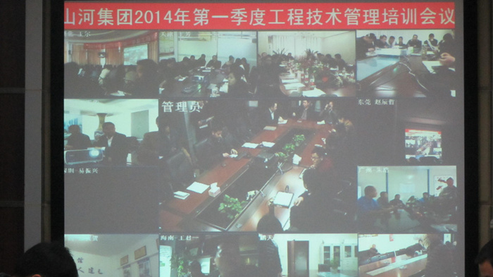 3月15日(星期六)上午9:00,山河集团2014年第一季度工程技术管理培训会议在集团总部召开,各区域公司、分公司以视频会议形式参加。参会人员主要为集团总部、区域公司的工程、技术、安全管理人员以及项目部的技术负责人、安全管理人员,共计约235人。