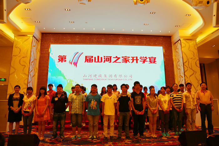 山河集团每年都会定期举办学子宴和捐资助学活动,山河人无私助学的善举给千千万万个寒门学子照亮了求学之路,也给他们的家庭带来了希望和改变。为表彰在2014年第九届捐资助学活动中的优秀代表,升学宴的第一个环节就是由集团公司党委书记舒先厚向19位项目经理颁发“慈善之星”的奖杯,同时授予湖北公司、新疆公司先进单位的荣誉称号。