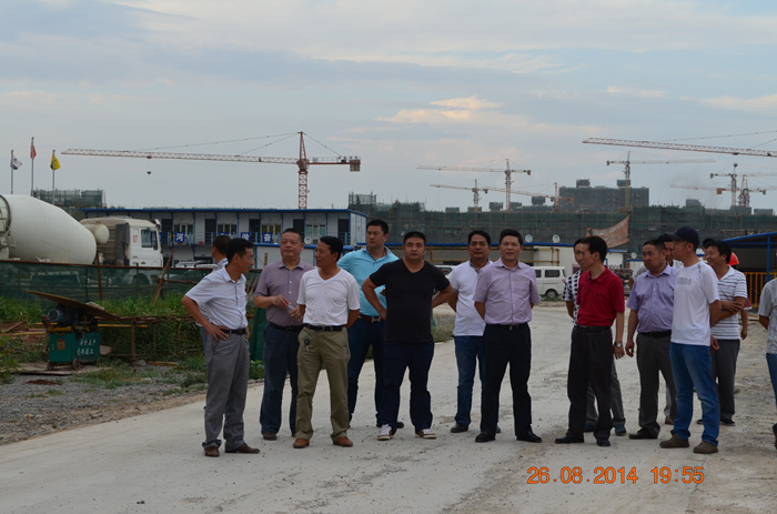 8月26日,程理财董事长一行在山河集团副总经理林金安、新疆区域公司总经理曾秋喜、新疆鹏天房地产开发有限公司总经理郑承碌鹊呐阃下,先后查看了“山河•东湖世家”、“山河•福泰花园”、“东湖公园”等项目工地,对开发、建设项目进行了现场指导和帮带。