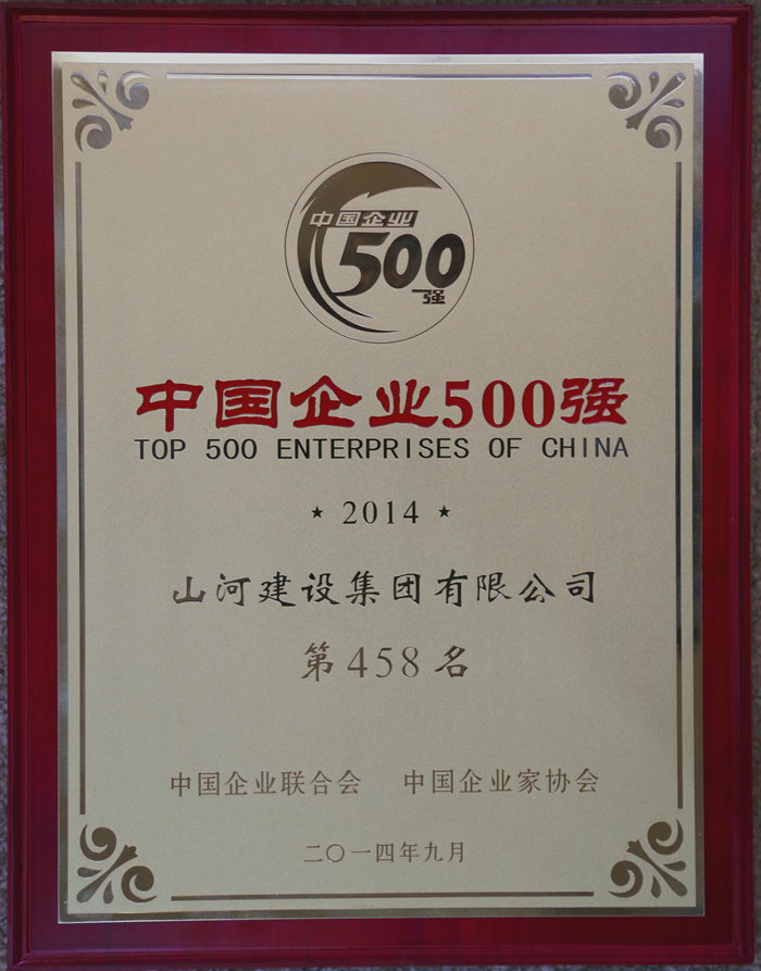 9月2日,“2014中国500强企业高峰论坛”在重庆举行,会议当天发布了2014中国500强企业榜单。山河集团营业收入256亿元,排名458位,首次进入中国企业500强。