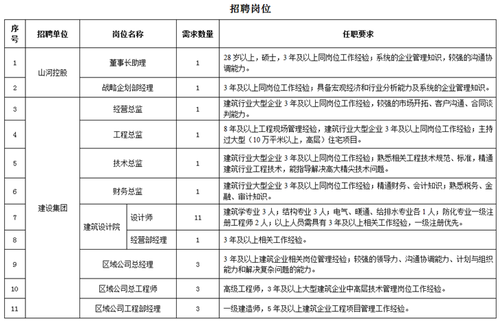 品质山河 成就梦想--山河集团大型精英招募计划全面启动