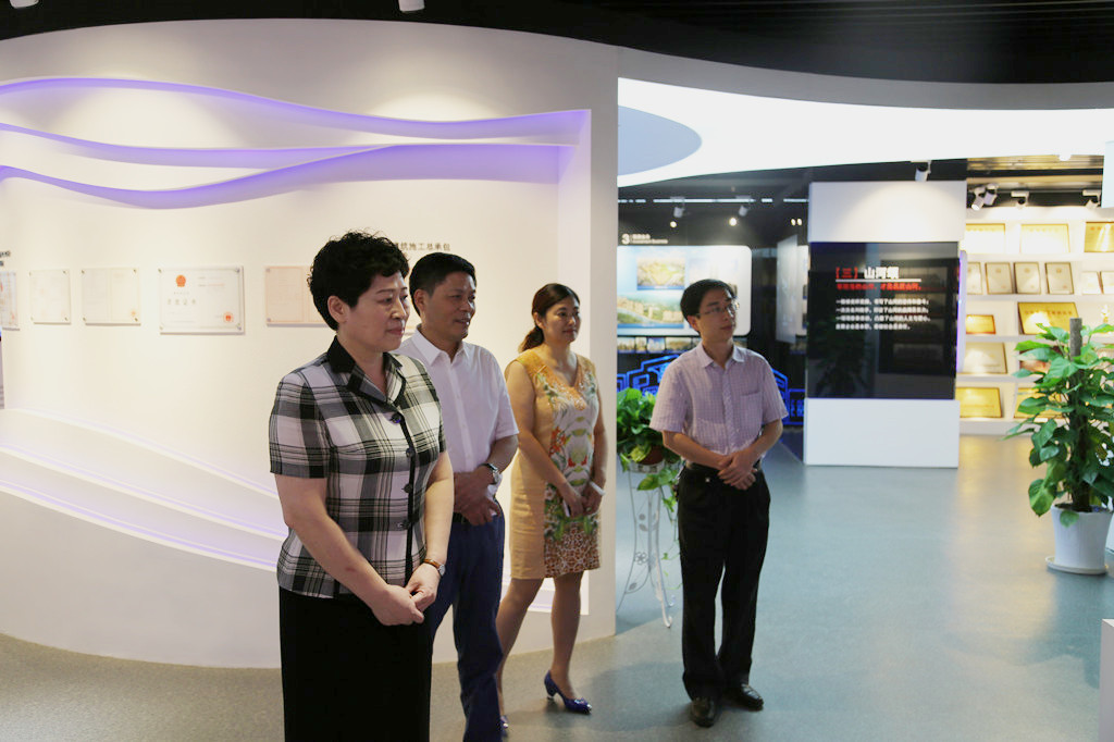 首先,马萍副部长一行在程董事长的陪同下参观了企业展示中心,通过现场的讲解与交流,全面而直观地了解了山河集团的发展历程、组织架构、所获荣誉及企业文化。