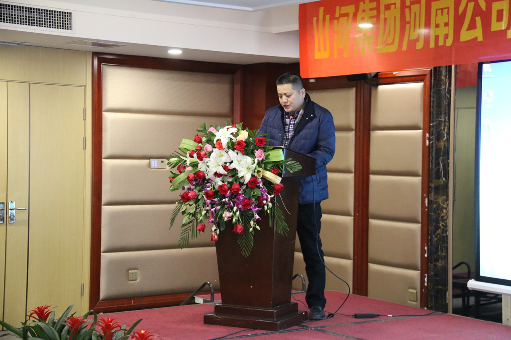 2016年1月16日上午,河南公司2015工作会议暨表彰大会在郑州格林东方酒店隆重举行。河南公司全体员工、项目经理、项目部主要管理人员、表彰人员等共计70余人参加了此次会议。山河集团常务副总兼湖北公司总经理林中茂、河南公司总经理马文敏等领导参加了本次会议。大会由河南公司副总经理余亮主持。