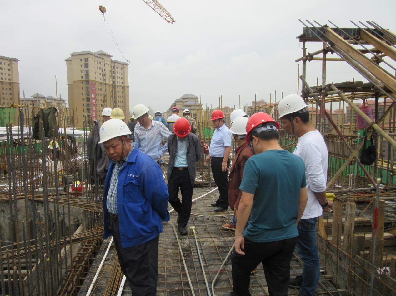 检查组一行首先考察了呈贡雨花观山苑棚户区改造工程的施工现场,对该项目的模板、脚手架、基坑降排水等专项工程,以及塔机、施工电梯、临边洞口防护、施工用电等重大安全事项进行了重点检查,并针对各分部分项存在的问题进行现场点评和指导,提出了相应的补救措施和规范要求。