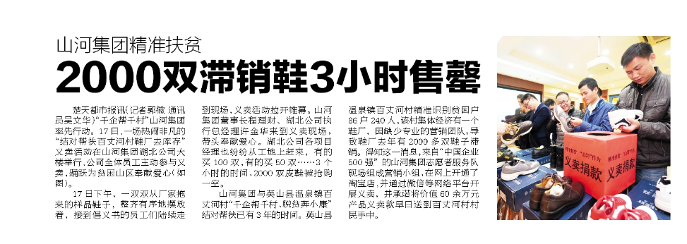 《楚天都市报》刊发 山河集团精准扶贫--2000双滞销鞋3小时售罄