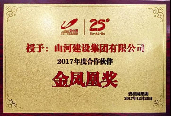 强强联手 汇聚匠心 | 山河集团获评碧桂园2017年度优秀合作伙伴“金凤凰奖”