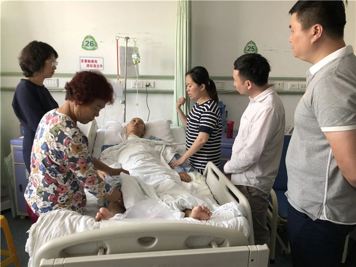 躺在病床上的患者是吴坤绪,2009年12月1日,他入职山河建设集团海南公司。多年来,工作认真负责,勤勤恳恳。2016年9月,他因突发脑部疾病住院动手术,一个多月后才康复。