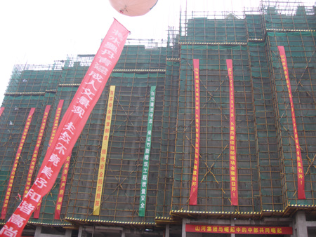 为进一步全面提高汉阳区建筑工程质量、安全、文明施工水平,汉阳区建管站于2006年10月17日上午,在湖北山河集团水墨丹青项目部工地现场召开了质量、安全、文明施工现场观摩会。市建管办、市市场站、市质监站、市安全站,汉阳区委、区政府、区人大、区政协有关领导均到会表示祝贺。汉阳区各建设单位、施工单位、监理单位相关负责人参加了会议。