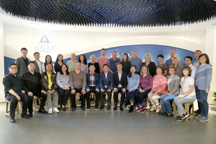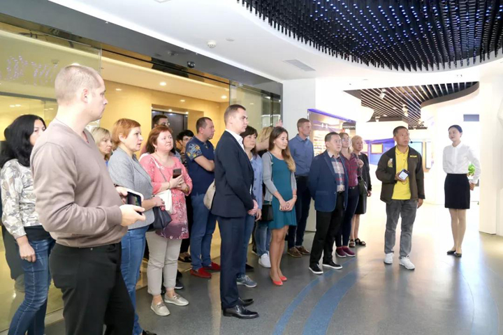 访华团一行近20人首先参观了企业展示中心,了解山河集团的发展历程和业务范畴。