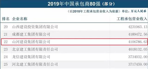 11月8日,美国《工程新闻记录》(ENR)和中国《建筑时报》联合发布2019年度“中国承包商80强和工程设计企业60强”榜单。山河集团再次荣登中国承包商80强排行榜,名列第22位,这是集团连续第7次上榜,也是湖北省唯一上榜的建筑企业。