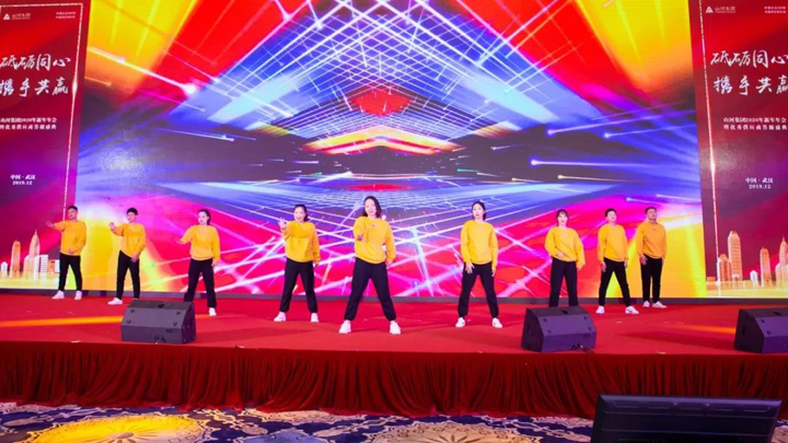 伴随着绵长柔美的音乐和丝丝入扣的鼓声,一支充满浓郁民族风情的开场舞《打秧鼓》拉开了年会的序幕。打起秧鼓,跳起秧舞,祈求来年风调雨顺、五谷丰登,预示着新年播种希望,山河再谱新篇。
