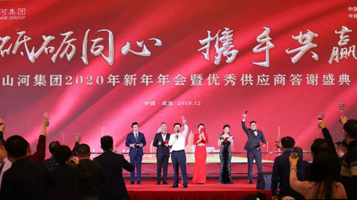 12月29日,在美丽的东湖之畔,“砥砺同心 携手共赢——山河集团2020年新年年会暨优秀供应商答谢盛典”在武汉东湖国际会议中心盛大举行。特邀领导和嘉宾,优秀供应商代表,控股集团、建设集团、地产集团全体人员及区域公司、分子公司员工等1300余人齐聚一堂,共同见证了这场年度盛宴。