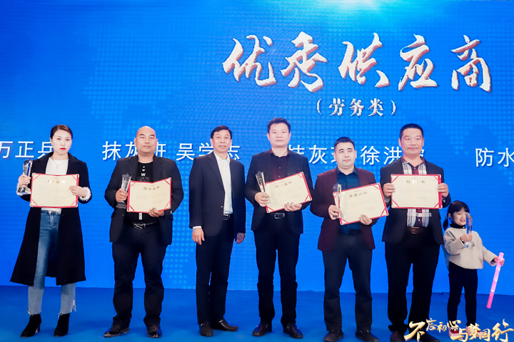 聚点滴以成江河浩荡,集细壤方就山峦苍茫。成绩的取得,离不开全体员工的共同努力。大会对2019年度表现突出的32名员工、2名生产经理、1名项目经理、1个优秀项目部、2名优秀供应商、2名专业分包单位、5名劳务班组进行了表彰。