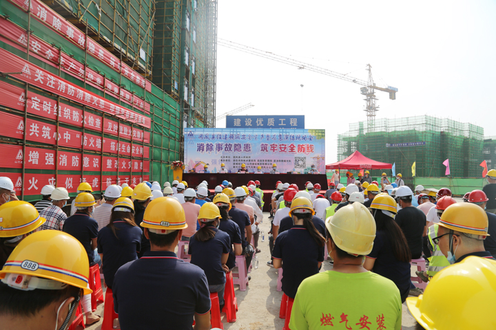 7月1日,团风县住建领域安全生产暨应急演练现场会在山河建设集团项目管理公司承建的团风县花园铺棚改项目施工现场举行,团风县人民政府副县长熊孟元等领导出席,活动由县住建局局长龙红兵主持。