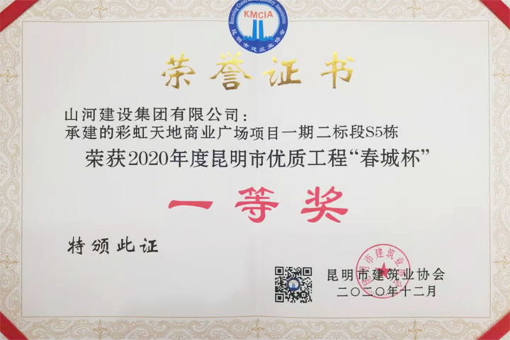 [云南公司]山河集团云南(广西)公司远洋彩虹天地商业广场项目喜获“春城杯”一等奖
