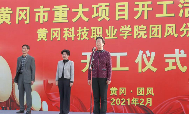 上午8时58分,在活动主会场——黄冈科技职业学院团风分校项目施工现场,项目开工仪式正式开始。仪式上,黄冈市委副书记、市长邱丽新宣布项目开工,这标志着团风县第一所高等院校的建设拉开序幕。