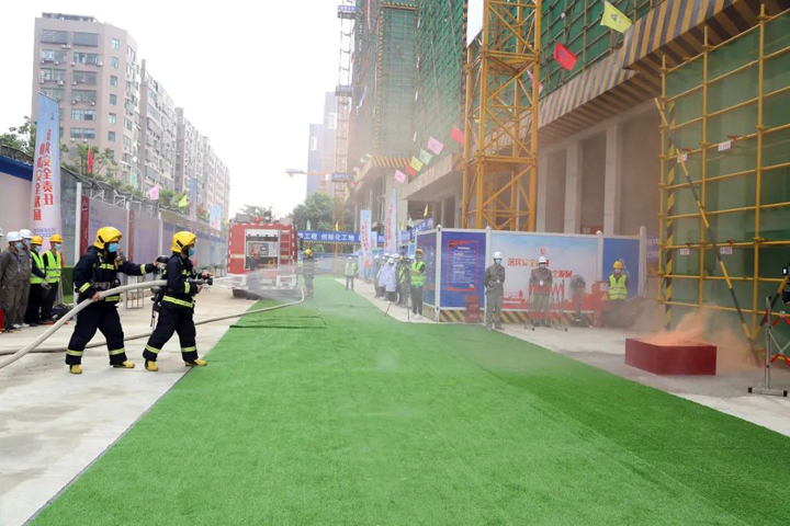 6月2日,武汉市洪山区2021年“安全生产月”启动仪式暨建筑施工应急救援演练活动在山河建设集团总承包公司承建的朗诗·熙华府项目施工现场举行。洪山区政府党组成员牛正可,区应急管理局局长金昆玲,区建设局、消防救援大队、和平街道办事处、建筑管理站等单位领导出席启动仪式,区发改局、城管执法局、卫生健康局、科技和经信局、商务局等近60家单位代表,建设单位、监理单位代表,总承包公司工程团队及在建项目代表等300余人参加了活动。洪山区建管站站长钱伟主持启动仪式。