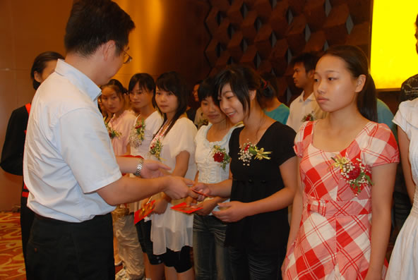 在宴会上,湖北经济学院学生处处长张以林先生作为特邀嘉宾对莘莘学子及其父母表示了真切关怀和殷切期望。同时集团公司党委书记舒先厚、总经理黄林、党委副书记汪发财、陈林生为金榜题名的学子颁发了奖金,以资祝贺和鼓励,同时还勉励学子们能以大学生活为起点,勤勤恳恳学习,堂堂正正做人,做山河建设事业的合格接班人。