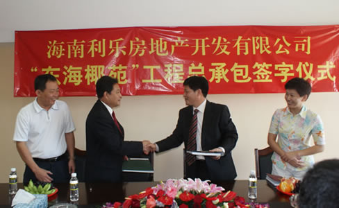 10月31日, 山河建设集团有限公司和海南利乐房地产开发有限公司在海口市半山花园海天商务楼举行“东海椰苑”项目签字仪式。