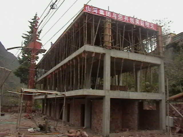 我公司承建的四川省汉源县大堰乡中心小学工程经过两个多月的紧张有序施工,已经初见雏形。宿舍楼主体结构已经封顶,一层填充墙砌筑完成;教学楼三层主体结构正在施工,预计本月23日主体可以封顶;综合楼施工至一层结构。整个工程计划将于2008年12月28日竣工。